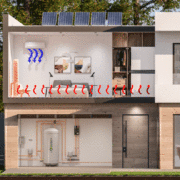 Como ya comentamos en el blog «Guía para entender la aerotermia» la aerotermia es una tecnología basada en una bomba calor aire-agua. La mayor parte de la energía que utiliza proviene del aire, entre el 70-75%, mientras que el restante es de la electricidad. Aunque con un sistema completo que incluya placas solares, el beneficio es máximo y prácticamente toda la energía emana de las renovables.