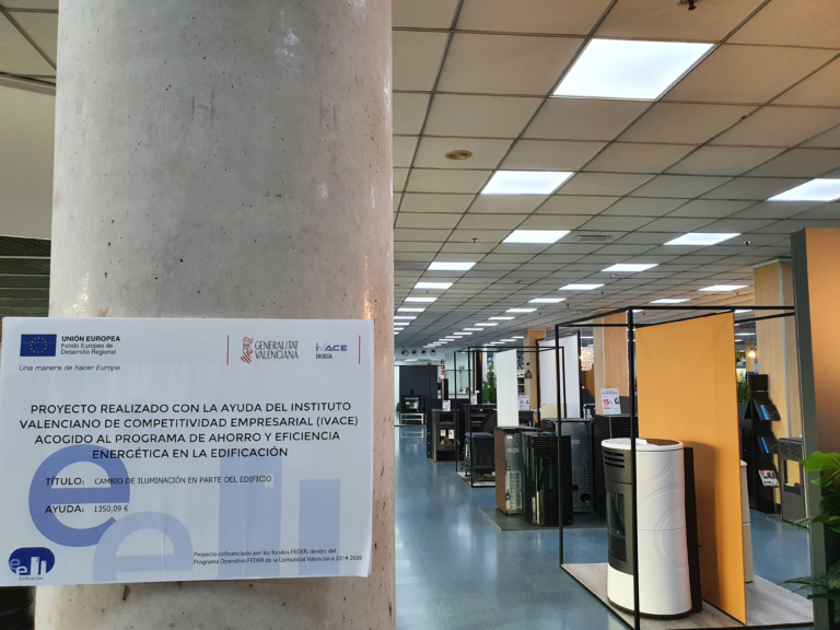 Desde Ferri presentamos un proyecto de subvención con el fin de cambiar las luminarias de nuestras plantas de venta, seleccionando para este proyecto subvencionado por IVACE de la Generalitat Valenciana, las que mejor se adaptaban a los objetivos de calidad lumínica y reducción del consumo energético. La cantidad concedida asciende a un total de 1.350,09 €. El hecho es que están en pleno funcionamiento habiendo conseguido una mejora del confort visual de las plantas de cara a nuestros visitantes, y como ya hemos dicho, con una importante reducción del consumo anterior.